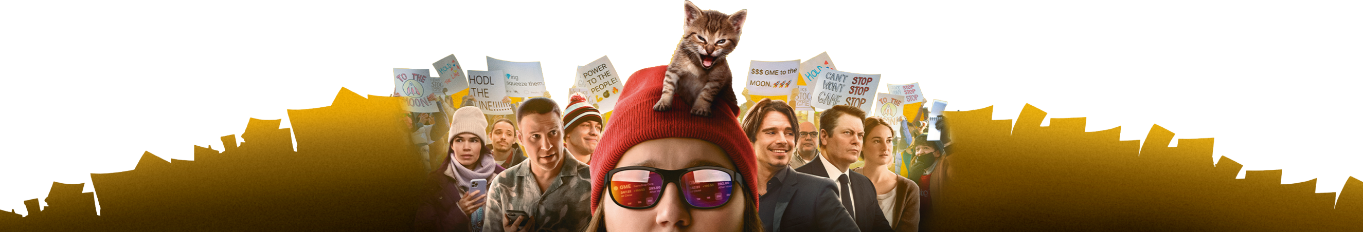 コロナ禍まっただ中の2020年。米マサチューセッツ州の平凡な会社員キース・ギル(ポール・ダノ)は、全財産の5万ドルをゲームストップ株につぎ込んでいた。アメリカ各地の実店舗でゲームソフトを販売するゲームストップ社は業績が低迷し、倒産間近のボロ株と見なされていたが、キースは赤いハチマキを巻き、ネコのTシャツ姿の“ローリング・キティ”という別名義で動画を配信し、この株が著しく過小評価されているとネット掲示板の住民に訴える。すると、キースの主張に共感した大勢の個人投資家がゲームストップ株を買い始め、2021年初頭に株価はまさかの大暴騰。同社を空売りしてひと儲けをもくろんでいた金融業界の大富豪たちは巨額の損失を被った。やがてSNSに集った無力な一般市民が、この世の富を独占するウォール街のエリートに反旗を翻したこのニュースは、連日メディアをにぎわせ、全米を揺るがす社会現象に発展。しかし一躍、時の人になったキースの行く手には、想像を絶する事態が待ち受けていた……!